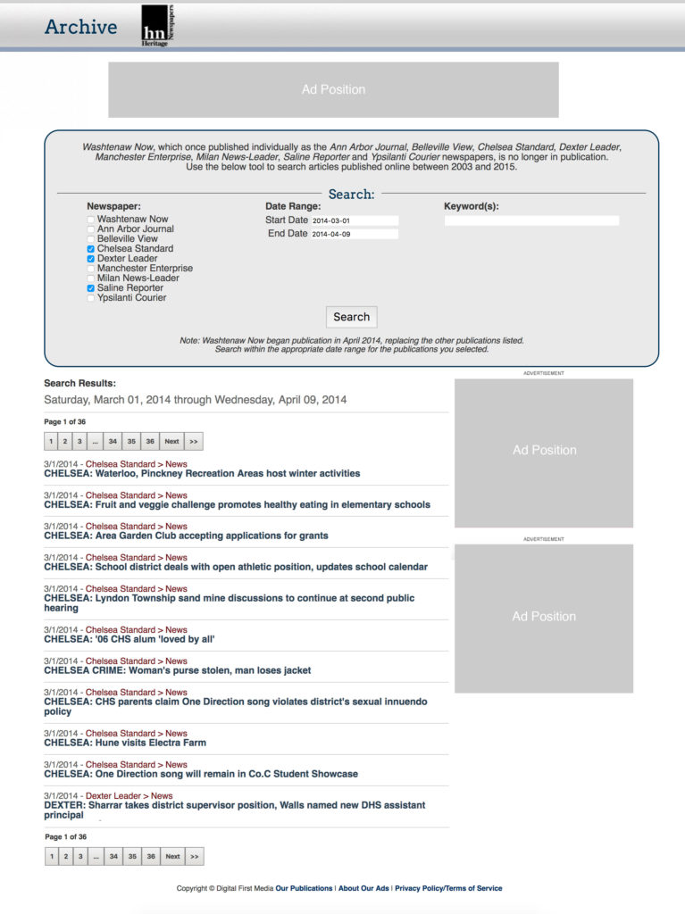 My tasks: When some publications closed, our company still wanted to retain an archive of the old content so it was still accessible to users. The former CMS provider gave us a dump of all the assets in tiered folders, which was quite extensive. I developed a hierarchal structure within a database to make these assets searchable from an online tool. Users can search by multiple publications at a time and have options for date range and keyword searches. The results list where the content was published and the date to assist them in their search.
